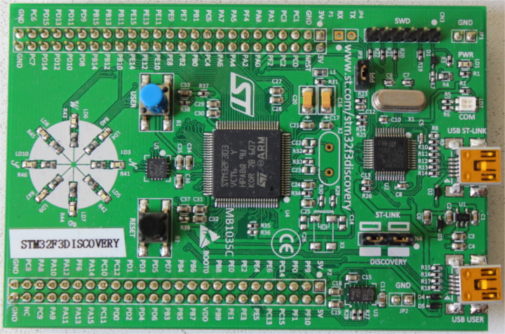 This book will be using the STM32F3DISCOVERY development board from STMicroelectronics for the majority of the examples contained within. This board is based on the ARM Cortex-M architecture, and while basic functionality is the same across most CPUs based on this architecture, peripherals and other implementation details of Microcontrollers are different between different vendors, and often even different between Microcontroller families from the same vendor.